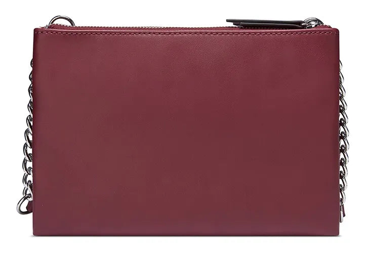 Tem uma alça longa que permite cruzar a bolsa, tornando-a um acessório leve.