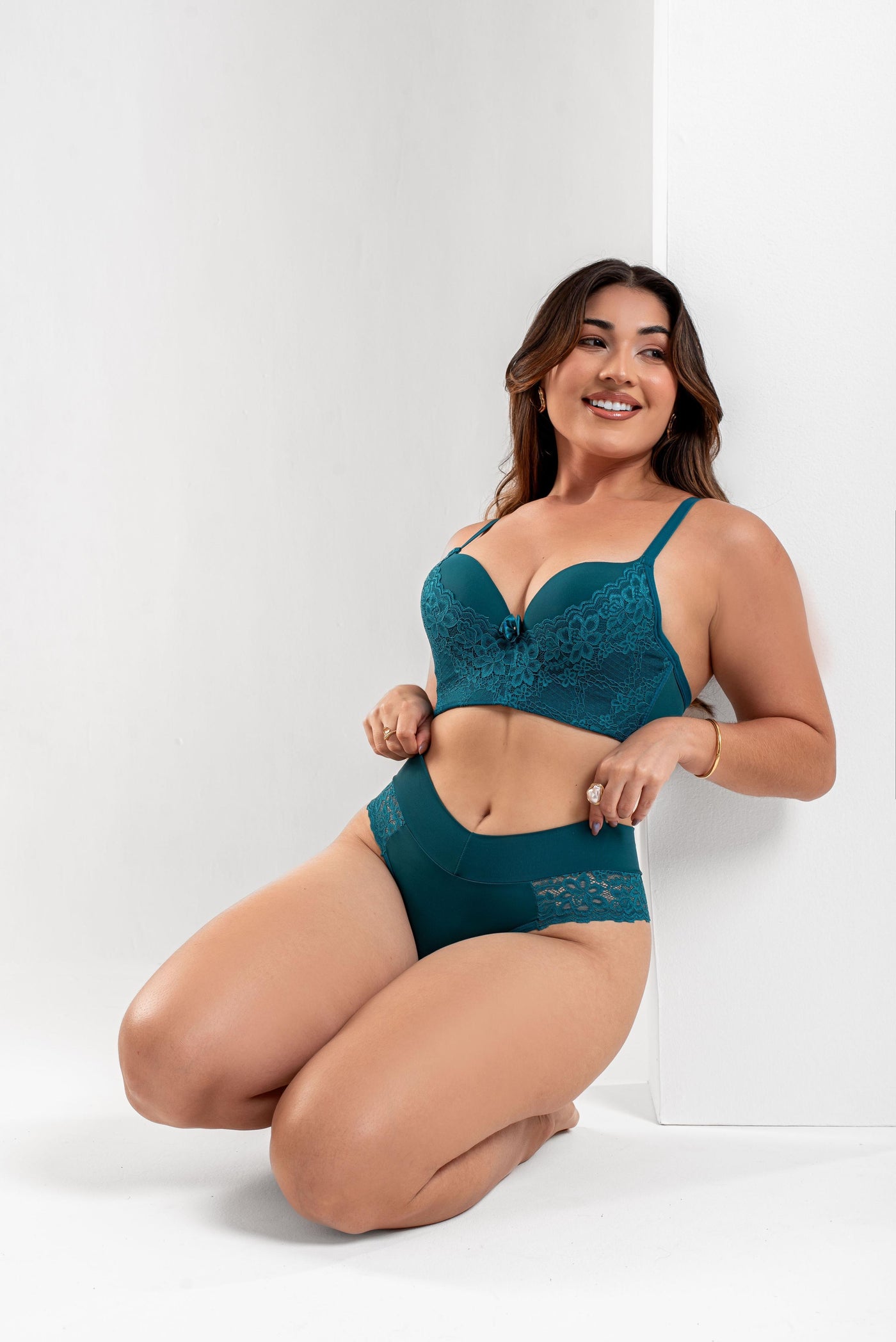 Conjunto De Lingerie Renda Luxo Prysben - M-Verde